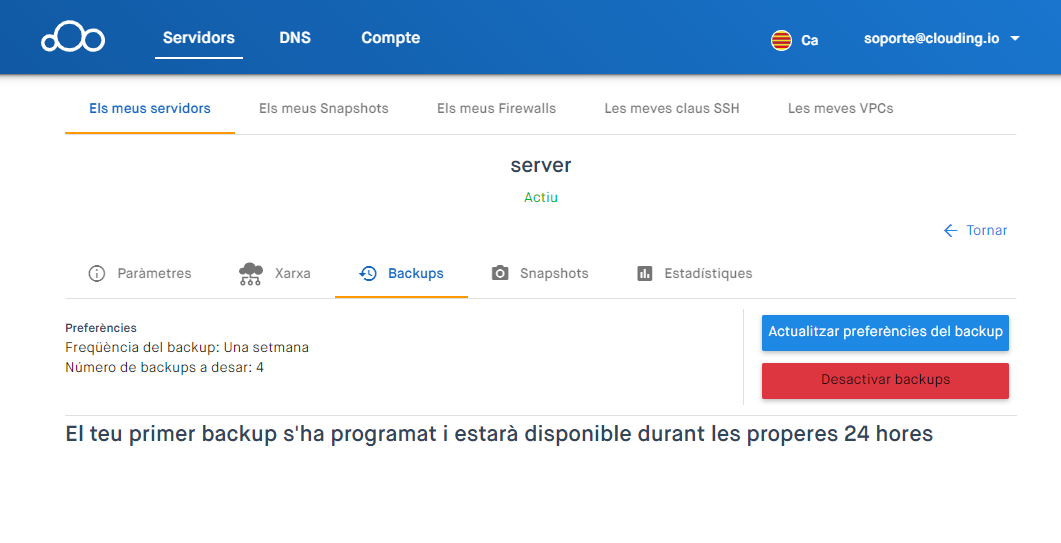 A Servidors/Els Meus Servidors fes clic en el servidor que vulguis modificar i a la pestanya Backups fes clic a "Actualitzar preferències del backup".