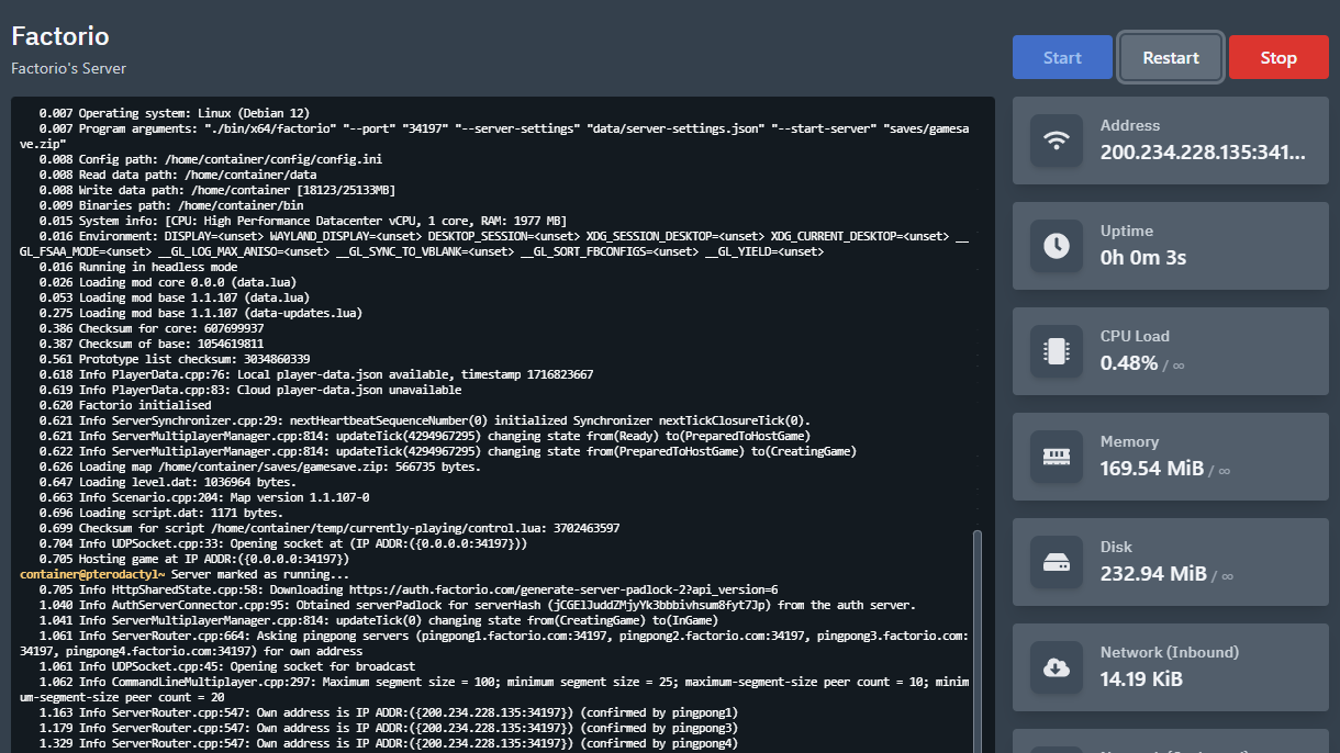 Et recomanem activar l'Anti DDoS estricte si el teu servidor de Factorio és d'accés públic.