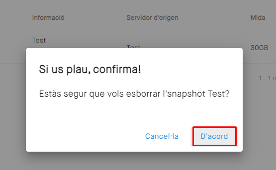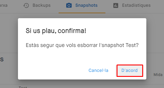 Acceptarem el missatge d'avís i el snapshot serà esborrat.