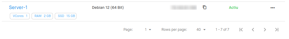 Per poder reinstal·lar el sistema operatiu, hauràs d'anar al llistat dels teus servidors i fer clic sobre la icona dels tres punts per mostrar el menú amb l'opció de Reinstal·lar. També pots fer clic sobre el nom del servidor i fer clic en l'opció de Reinstal·lar que apareix a la columna Accions del servidor: