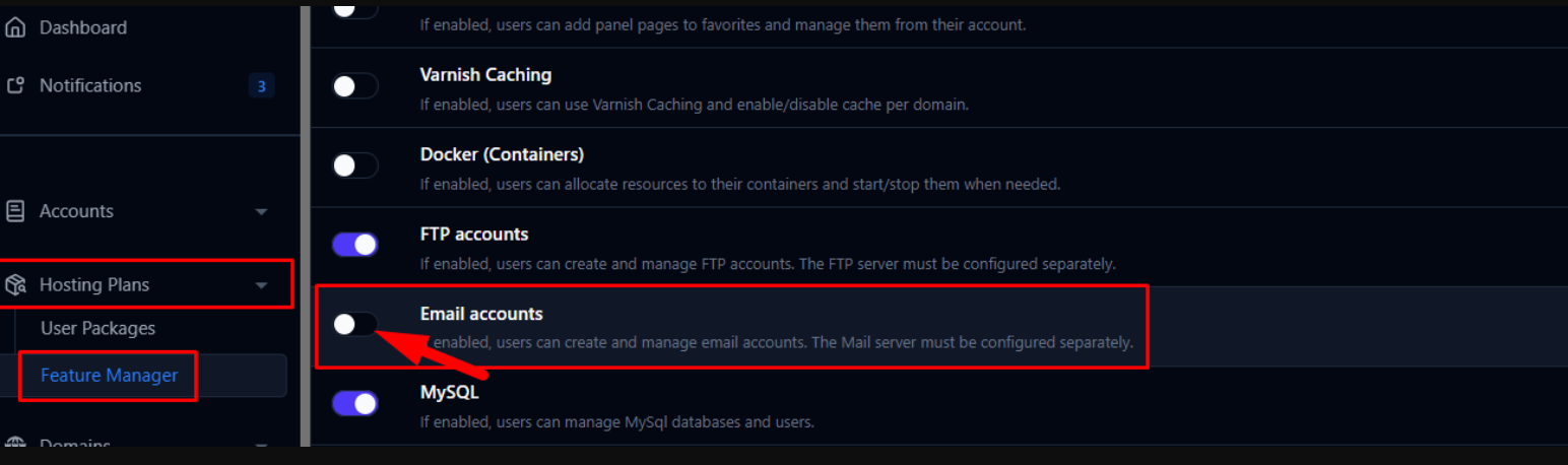 Al menú lateral esquerre, accedeix a Hosting Plans → Feature Manager.