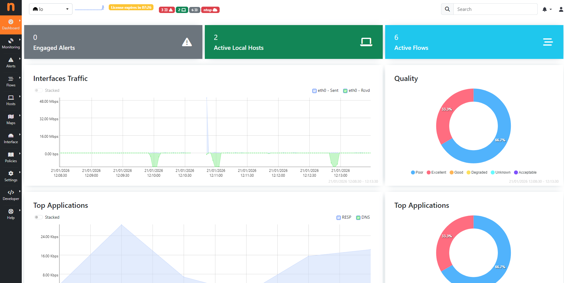 Ntopng és una eina de monitoratge de xarxa en temps real que permet analitzar el trànsit que circula per una infraestructura de xarxa.