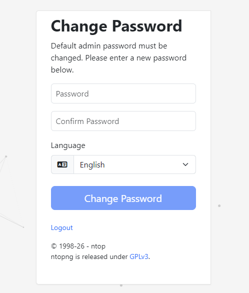 Per defecte, ntopng utilitza l'usuari admin amb la contrasenya admin