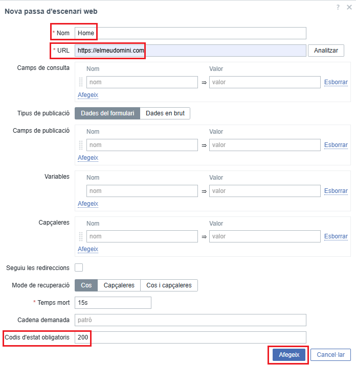 Repetirem els passos anteriors tantes vegades com URLs de la nostra pàgina vulguem monitoritzar: