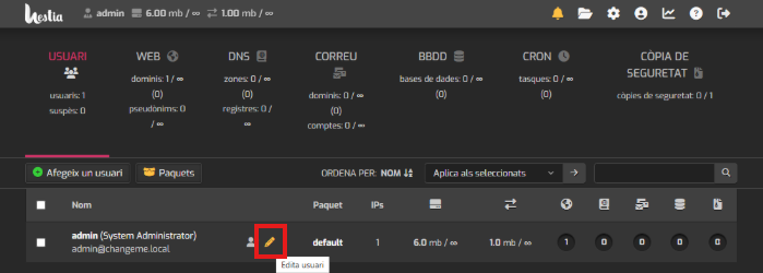 Per a canviar-ho has de fer clic sobre Editar Usuari (Llapis) dins del panell: