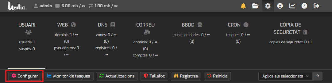 És important que després de la instal·lació de HestiaCP realitzis els següents passos per a evitar problemes en un futur.