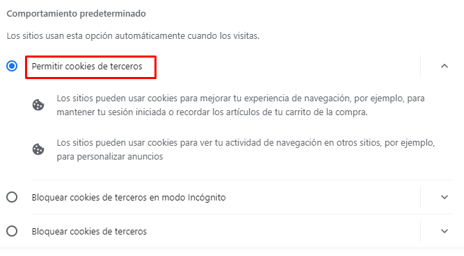 The configuration of cookies in browsers is done in the privacy options of each browser. To do this you can follow the instructions specified by each browser: Chrome, Firefox, Microsoft Edge and Safari.