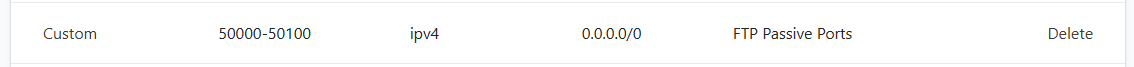 When you create a firewall rule for ports 20-21 (FTP), CloudPanel also automatically generates the ProFTPD Passive Ports rule, which enables the passive port range (49152-65534).