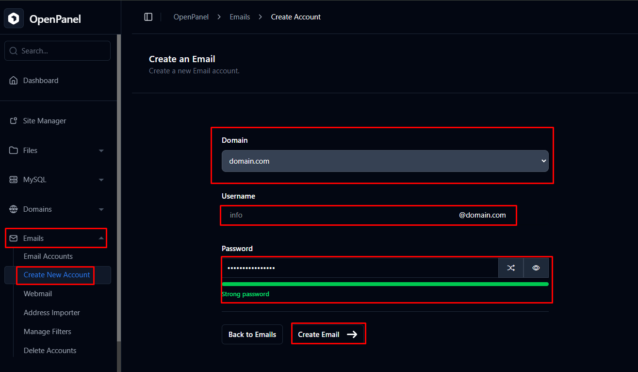 In this article, we explain how to create an email account from the OpenPanel control panel.