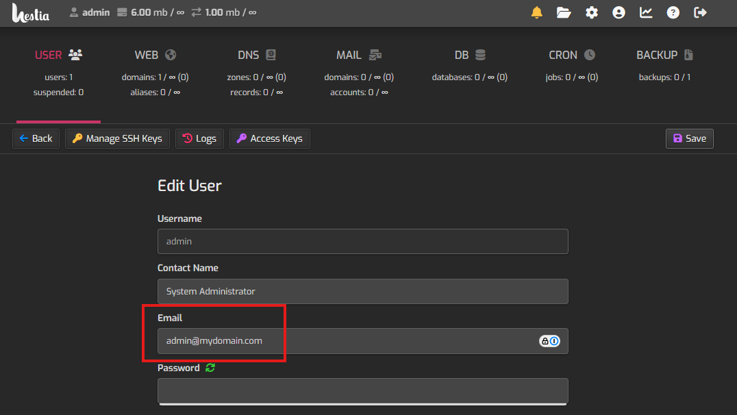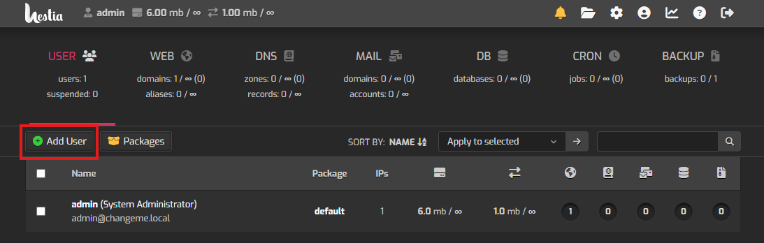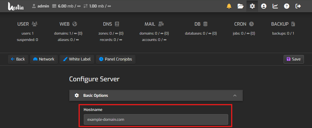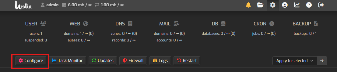 Another important thing to configure is the Backups: if you create a server with HestiaCP with 10GB of SSD disk space, it is very likely that the automatically generated backups will fill up the disk, causing issues to log in and other inconveniences.