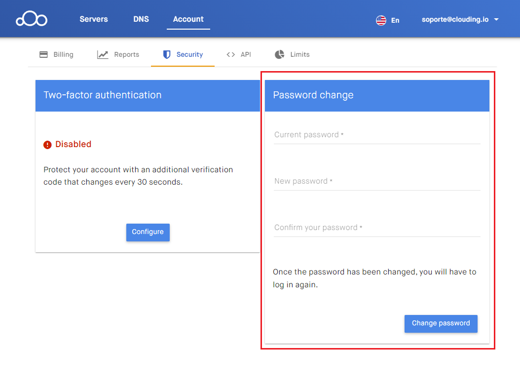 As you already know, to access your Clouding account, you need to enter a username (email address) and a password.