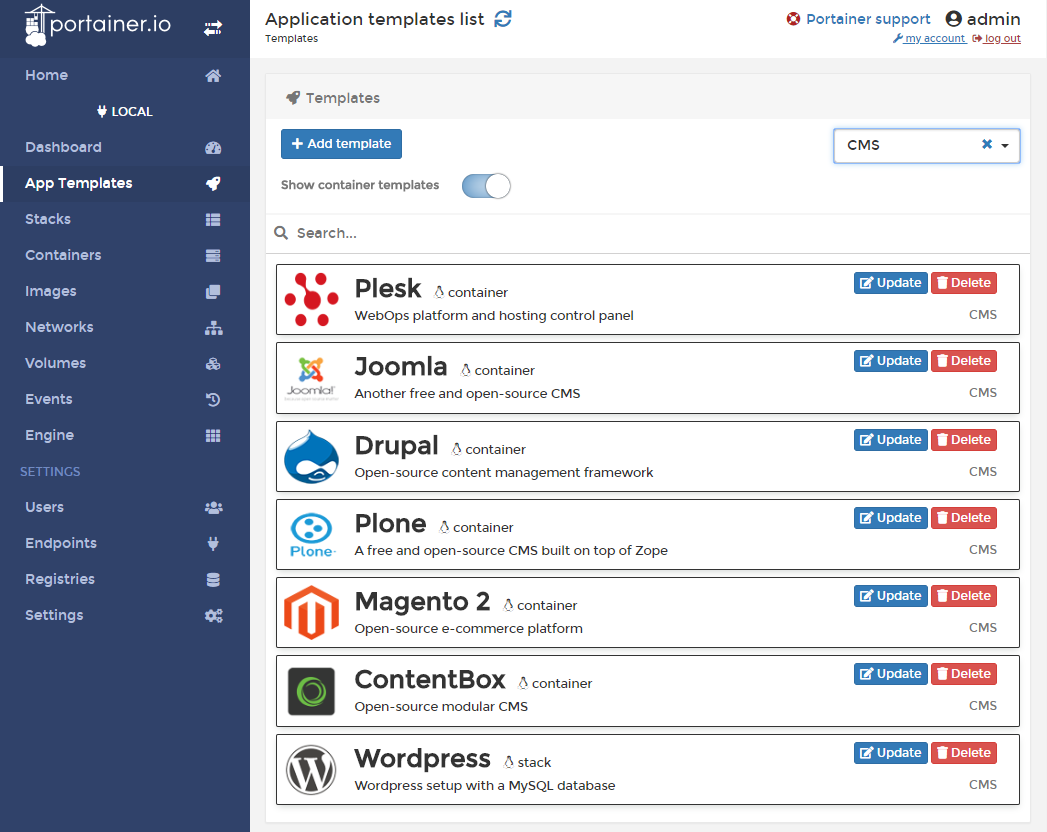 Now that we have installed and set up Portainer we can create the containers that we want. We can do it in different ways: “App Templates”, “Stacks” or “Images + Containers”. Below are several screenshots with different examples: