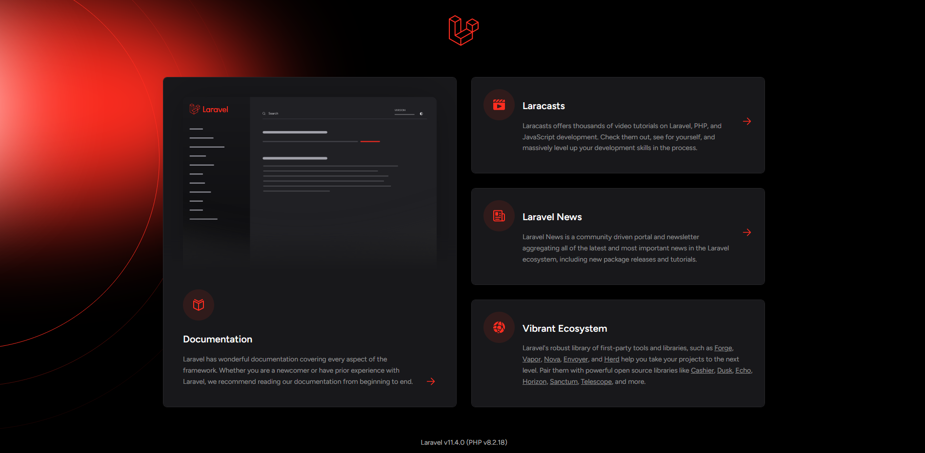 A este punto, has dockerizado Laravel con NGINX y MySQL. Ahora, abre tu navegador web y escribe la URL http://TU-servidor-ip. Serás redirigido al panel de control de Laravel por defecto: