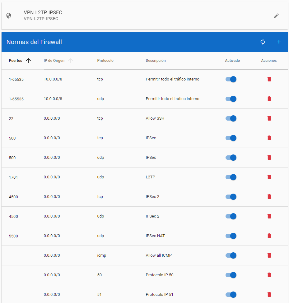 Para que funcione nuestra VPN crearemos un perfil de firewall con las siguientes reglas: