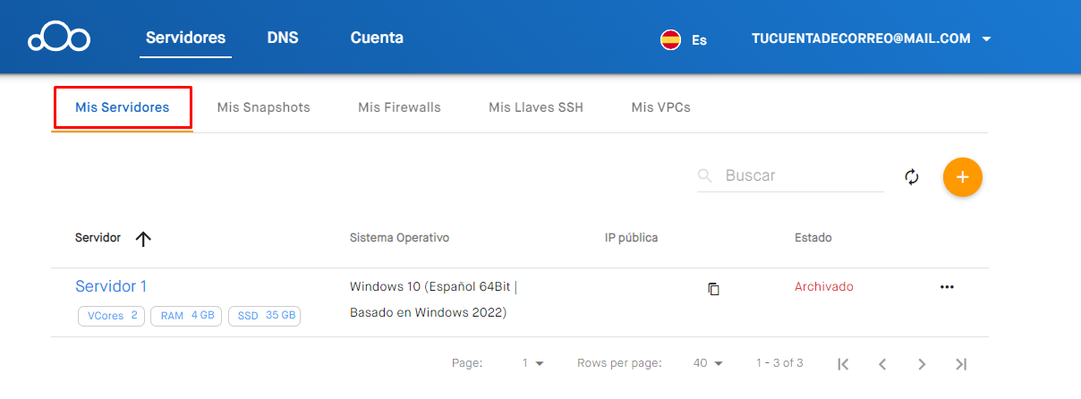 Para ello, debes dirigirte al apartado de Mis Servidores donde podrás ver el listado de tus servidores.