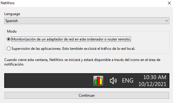 Una vez lo tengamos instalado, podrás seleccionar el idioma así como el uso que le vas a dar, en nuestro caso queremos monitorizar el uso de red del Windows.