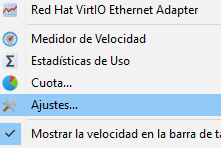 En ajustes podremos verificar parámetros como la unidad de medida, podremos seleccionar interfaz a monitorear, colores de los gráficos...